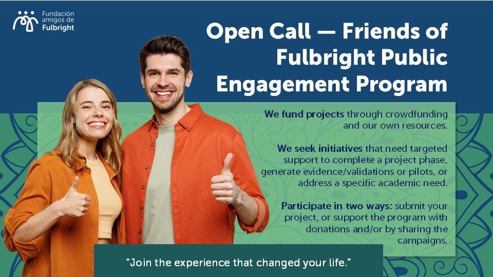 Los Fulbrighters seleccionados a través del Friends of Fulbright Public Engagement Program recibirán apoyo integral de la Fundación Amigos Fulbright para fortalecer y visibilizar sus proyectos educativos.